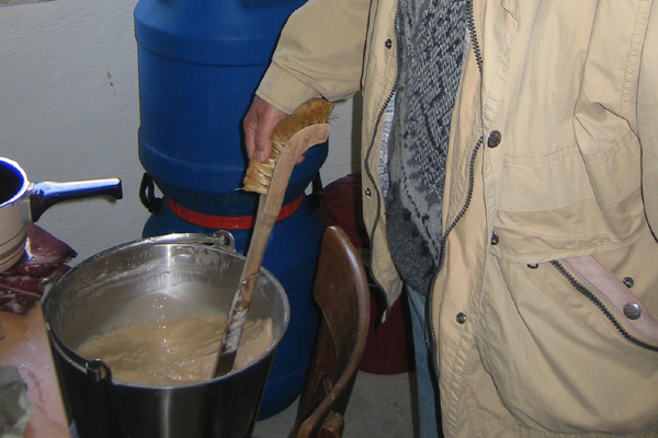 Sauerlacher Obstler noch einige Wochen, wird dann gefiltert und hier in Flaschen gefüllt.