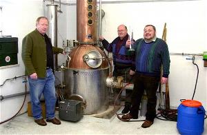 Sepp, Klaus und Thomas freuen sich über den gelungenen Feinbrand.