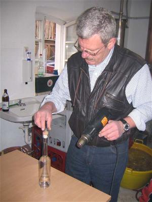 die Etiketten auf der Flasche zu platzieren - schließlich kann